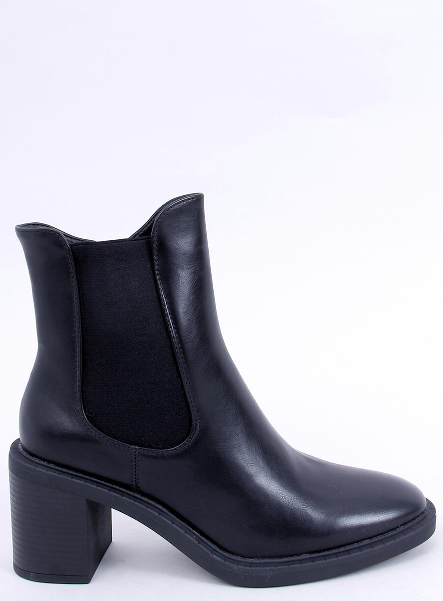 Dámske členkové čižmy na širokom podpätku s výškou 7,5 cm. Ich nepochybnou výhodou je univerzálna čierna farba, ktorá dokonale ladí s gumenou vsadkou pripomínajúcou Chelsea boots. Navyše majú na boku zvršku praktický zips, vďaka ktorému sa ľahko obúvaju. Sú vyrobené z ekologickej kože a vnútro je vystlané jemnou kožušinkou.